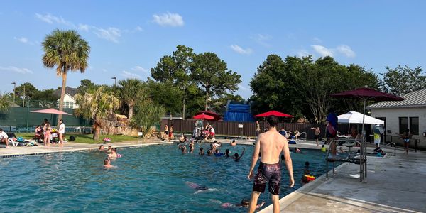 This awesome pool party happens the Friday of Memorial Day Weekend. We have music, pizza, water slide, and wet games!